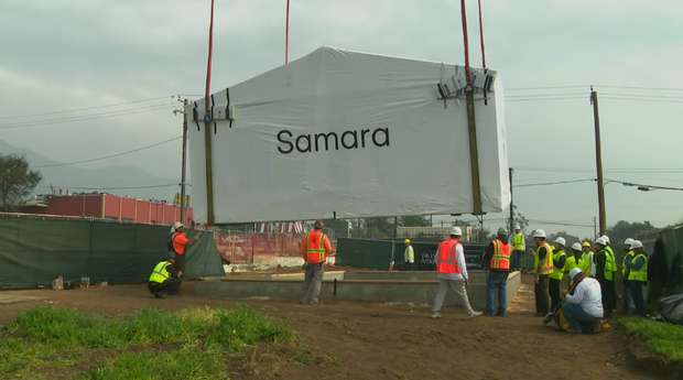 The first modular home as part of Steadfast LA and Samara's modular housing initiative was installed in Altadena following the Eaton Fire on Thursday morning.