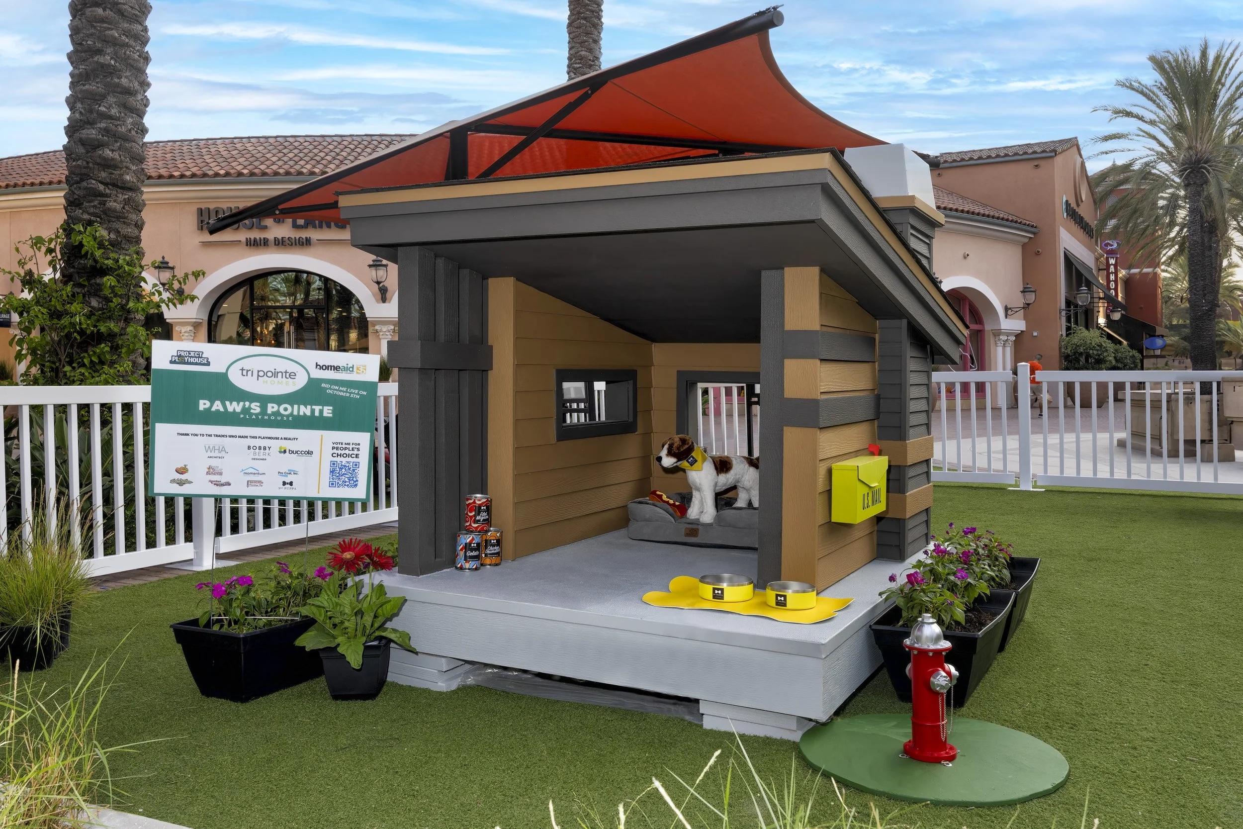 All interior contents of the Playhouse are included with sale. Included with Paw’s Pointe is a $150 gift card from Aussie Pet Mobile Grooming, and a set of pet items from Sgt. Puppa. Landscape not included.